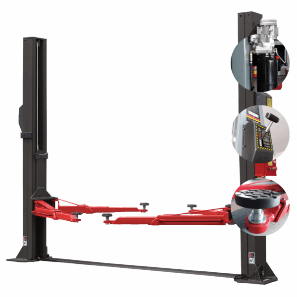 Cet élévateur à 4 colonnes est doté d’une unité de pompe montée en haut de la colonne pour économiser de l’espace. Le modèle dispose d’un double système de verrouillage, qui garantit la sécurité des personnes et des équipements.