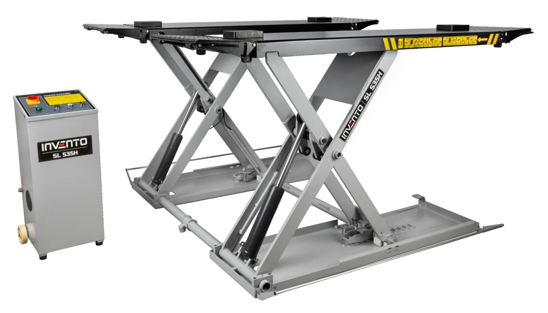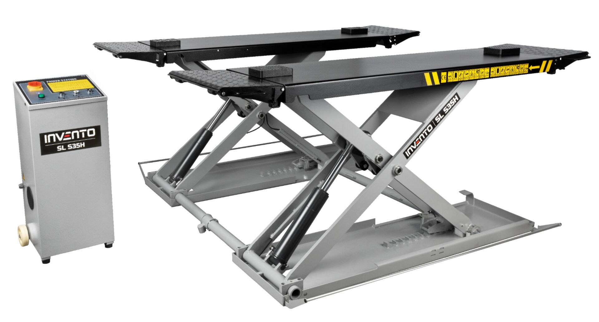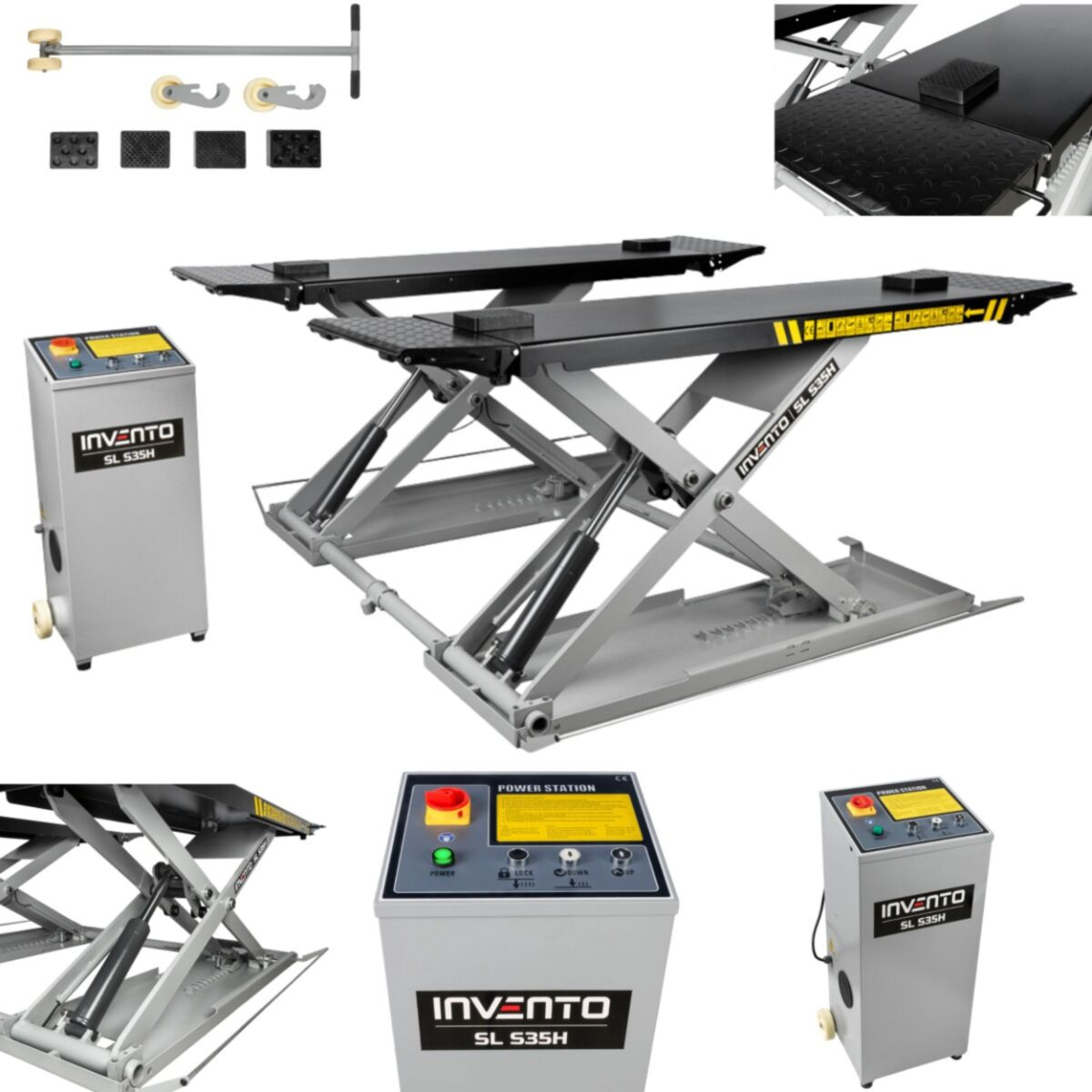 Le pont élévateur Invento SL S35H est pont ciseaux conçu pour le levage de véhicules jusqu’à 3,5 tonnes à une hauteur de 1,2 mètre. Il est idéal pour les ateliers de pneumatiques et de mécanique, facilitant le remplacement des plaquettes et disques de frein.