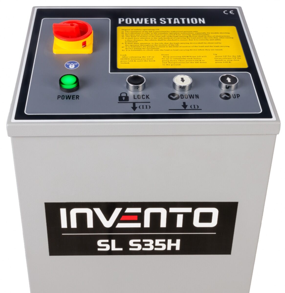 L’élévateur Invento SL S35H est équipé des dispositifs de sécurité requis par la documentation CE, garantissant ainsi un fonctionnement sûr et durable en atelier.